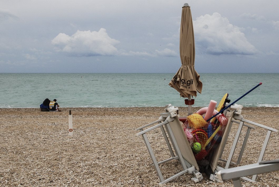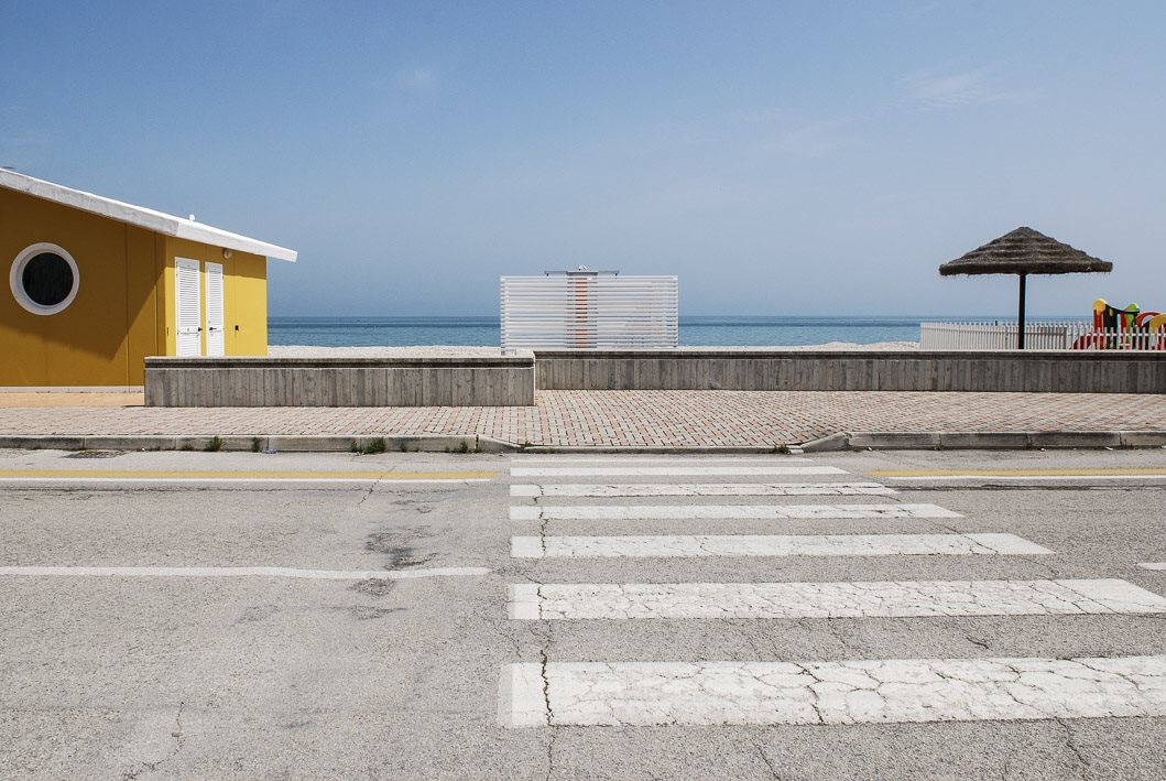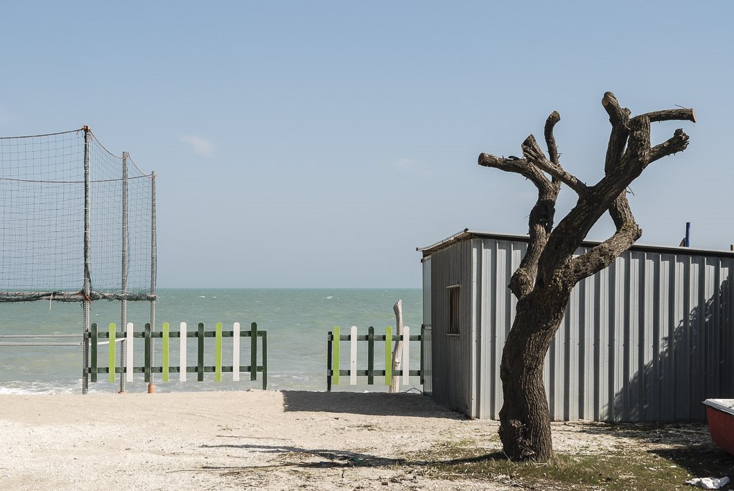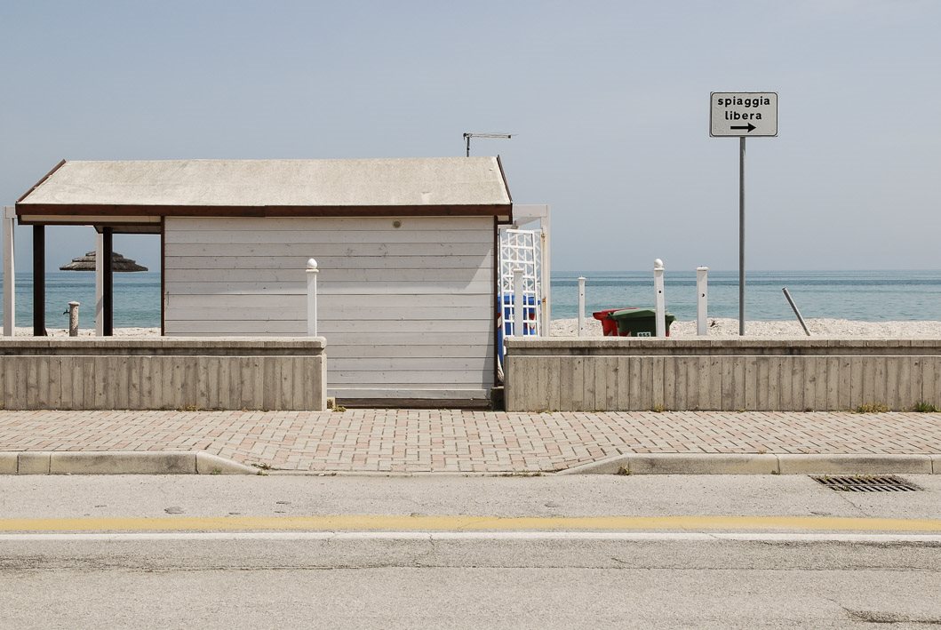Attrezzature balneari, residui trasportati dal mare, persone che godono o comunque fruiscono dei questa striscia continua di territorio che accomuna in intero versante della nazione diventano oggetto di osservazione, in una ricerca di come questo territorio di confine tra terra e mare sia, pur nella sua instabilità, abitato, utilizzato e reso produttivo.