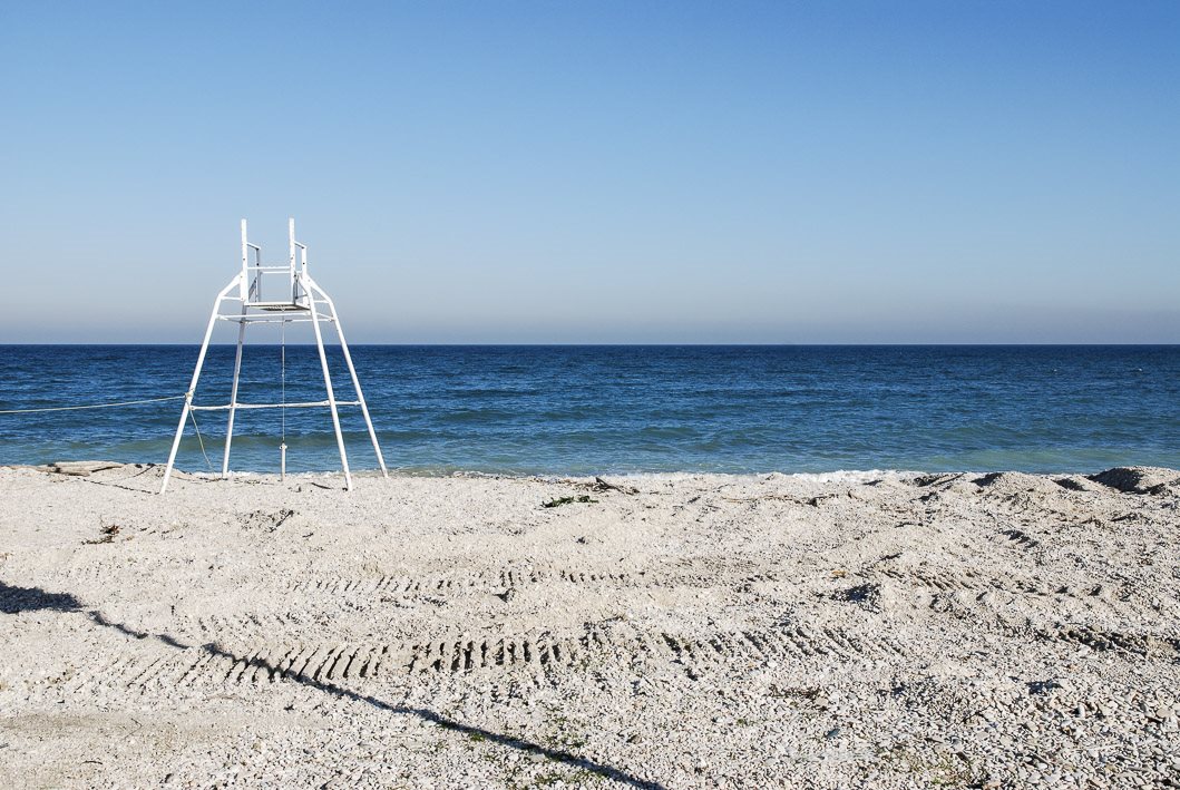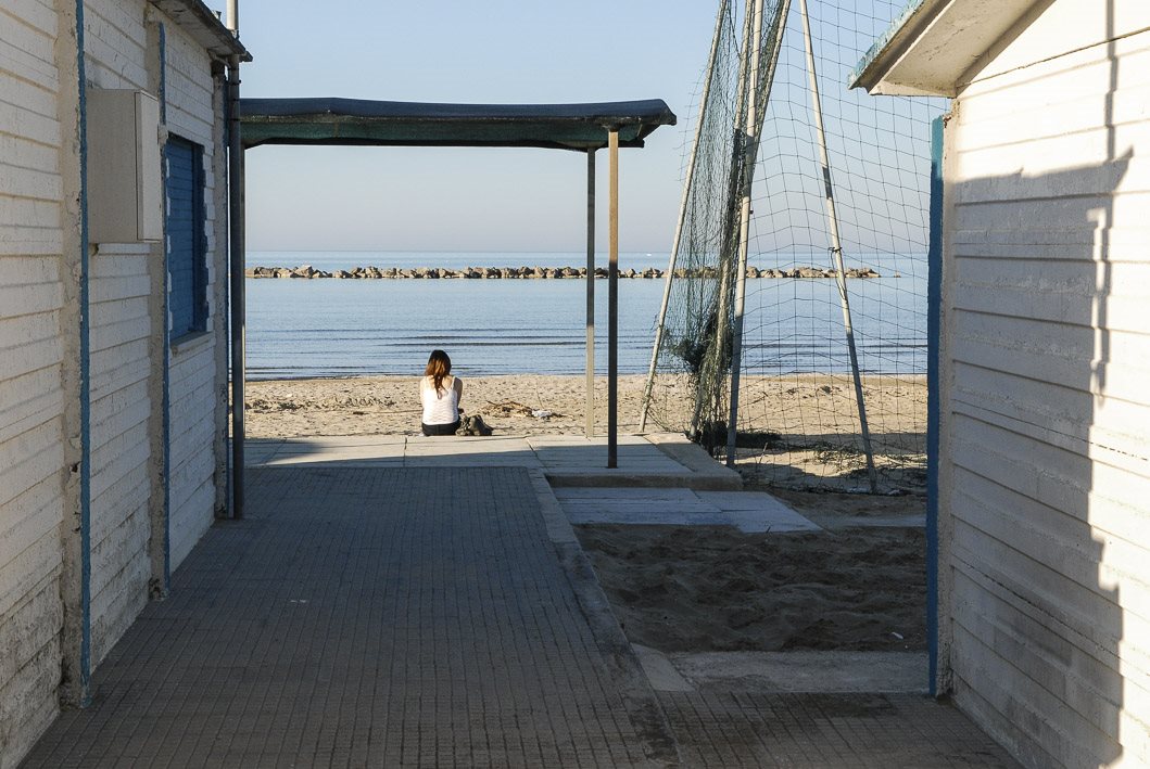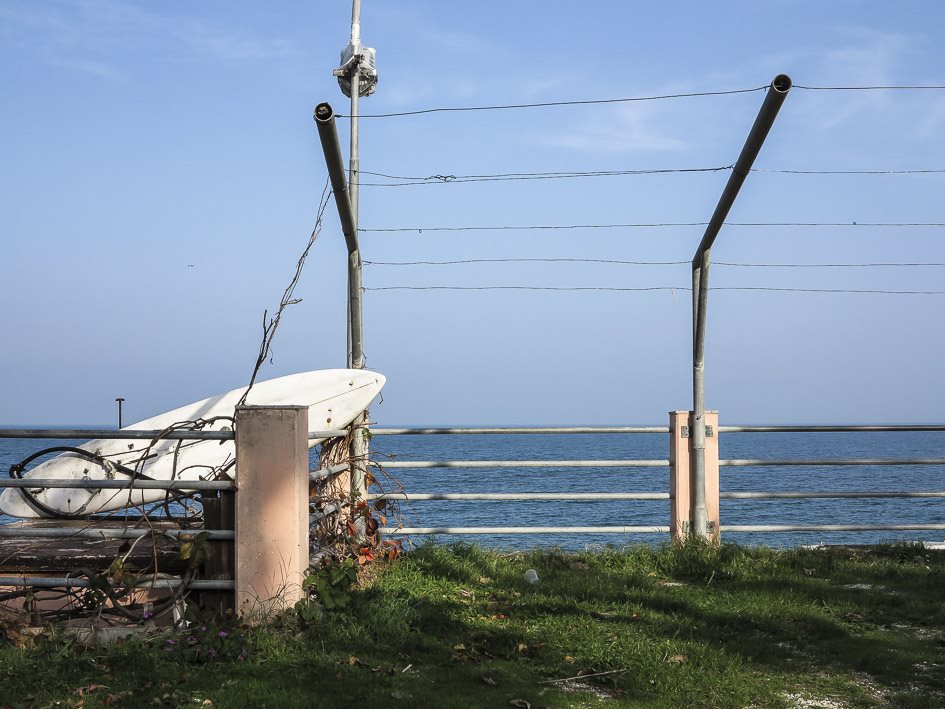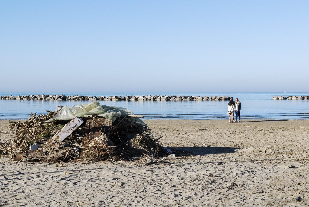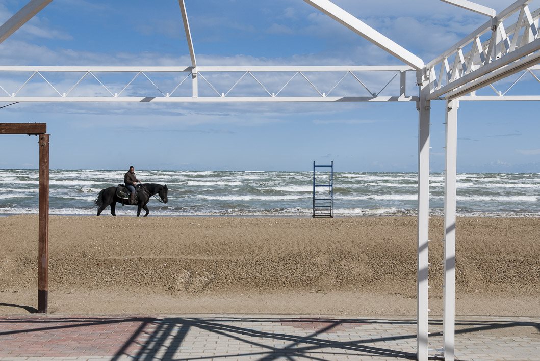 Attrezzature balneari, residui trasportati dal mare, persone che godono o comunque fruiscono dei questa striscia continua di territorio che accomuna in intero versante della nazione diventano oggetto di osservazione, in una ricerca di come questo territorio di confine tra terra e mare sia, pur nella sua instabilità, abitato, utilizzato e reso produttivo.