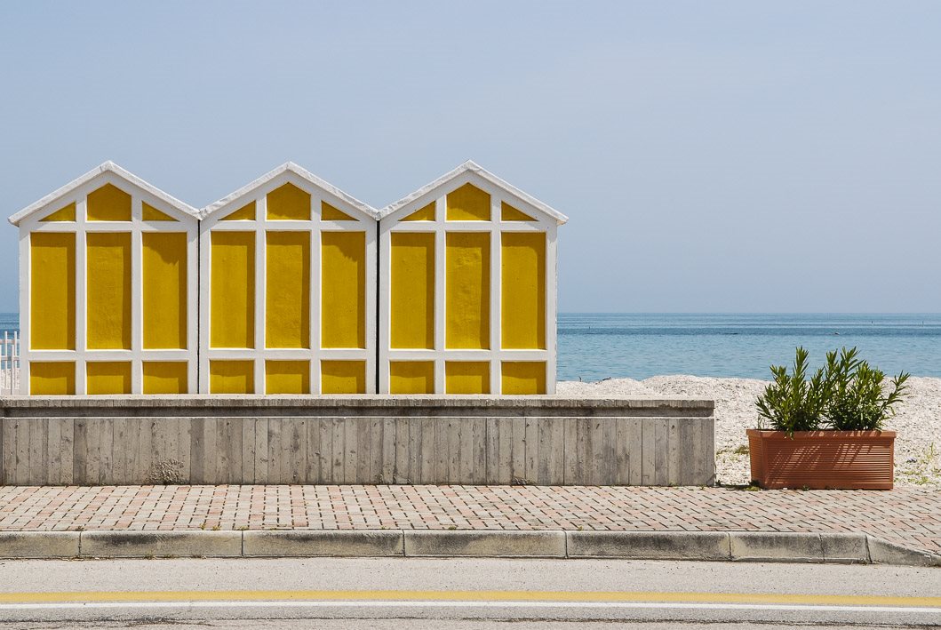 La costa marchigiana si può considerare ormai un'estensione, quasi un'appendice, di quella che vene spesso definita come megalopoli Padana, cioè di quell'area urbanizzata in modo continuo da comune a comune con un annullamento totale delle aree naturali originarie (ridotte ormai a poche isole) e spesso con una forte riduzione delle aree agricole. La sensazione attraversando questa parte di territorio è la perdita dei confini tra i diversi comuni: sopratutto lungo le maggiori vie di comunicazione le periferie urbanizzate delle diverse città e paesi, si uniscono e confondono in immense zone di sviluppo artigianale, industriale, commerciale... spesso caratterizzato dal panorama del capannone. La costa adriatica è ha subito una trasformazione analoga, di unione delle diverse città e centri urbani che si affacciano su di essa, con la differenza che le periferie, sono caratterizzate non tanto da attività produttive quanto da elementi urbani necessari allo sviluppo turistico, così percorrendo la Strada Statale Adriatica SS16 ci si trova ad attraversare un continuum urbano composto da: alberghi (dal grande albergo a molti piani, alla piccola pensione a gestione familiare di due o tre piani), residenze private di diverse dimensioni ( dalla villetta bifamiliare al grande residence con decine di appartamenti), campeggi dalle varie fogge e dimensioni, altri edifici necessari al divertimento estivo; a questi si affiancano a volte anche piccole zone produttive o commerciali. Da Venezia a Pescara, rare e isolate sono le zone ancora non urbanizzate. Questa prima parte del progetto si rivolge in realtà a quell'ultimo tratto chiamato spiaggia caratterizzato da tutte quelle attrezzature e funzioni stagionali necessarie alle attività turistiche. La spiaggia e sopratutto il suo utilizzo antropico, a maggior ragione è continua senza alcuna interruzione (con l'eccezione forse delle foci dei fiumi); si tratta di una spiaggia uniforme (fatta eccezione per poche zone (Conero, Gargano...) è una spiaggia bassa, una volta caratterizzata dalle dune ora invece mantenuta e regolata con ripascimenti, pulizie stagionali, manutenzioni necessarie in seguito all'alterazione dell'antico equilibrio naturale che si era instaurato con le correnti e il trasporto delle ghiaie operato dai fiumi.