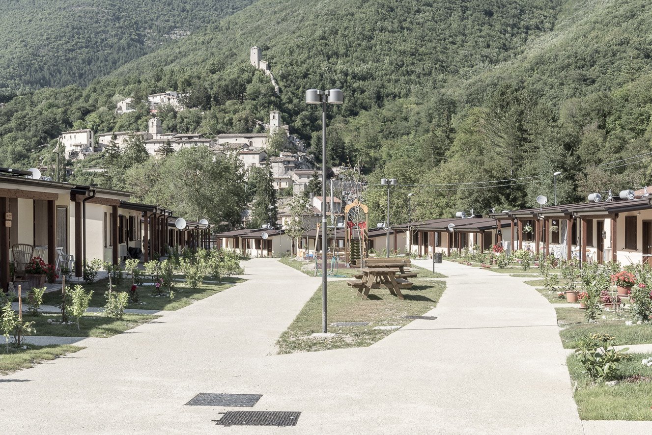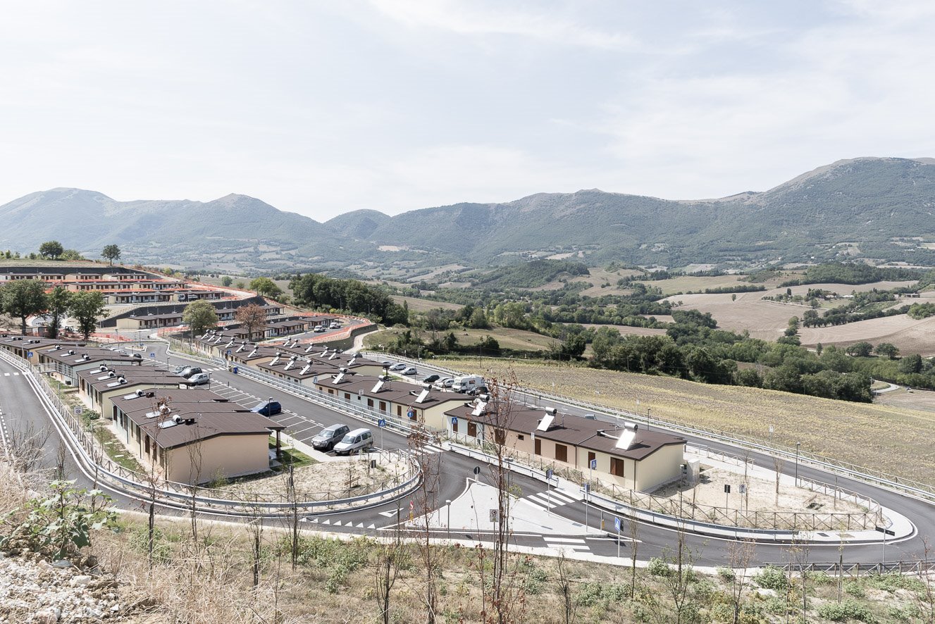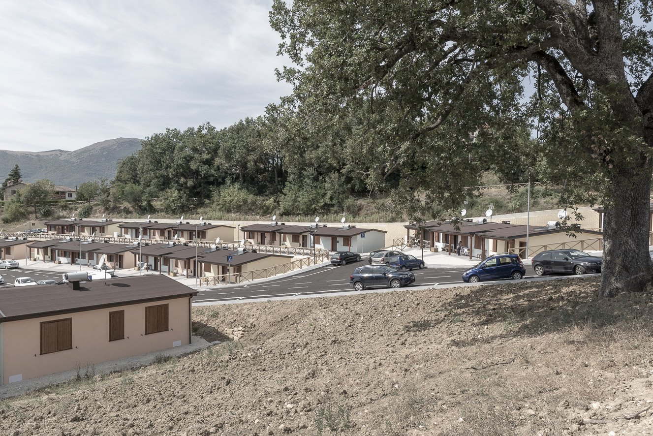 Come le S.A.E. si collocano nel territorio e come si rapportano al paesaggio complesso ed eterogeneo del Centro Italia, poi, avvicinandosi ed entrando negli insediamenti, si osservano scorci, particolari e dettagli di questi nuovi “quartieri”.