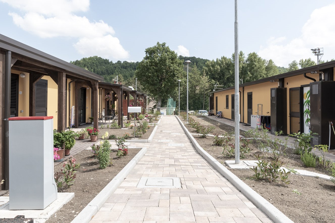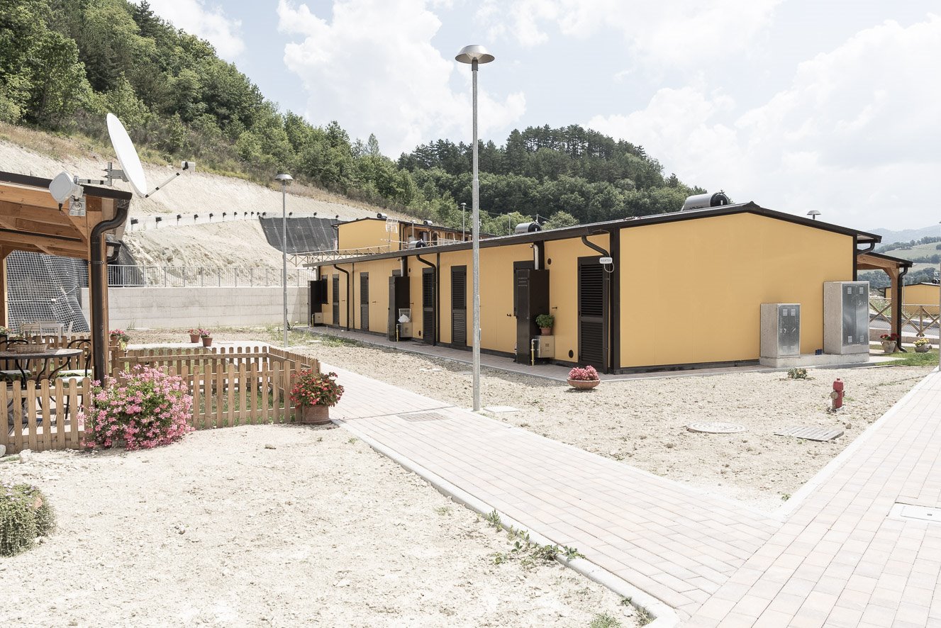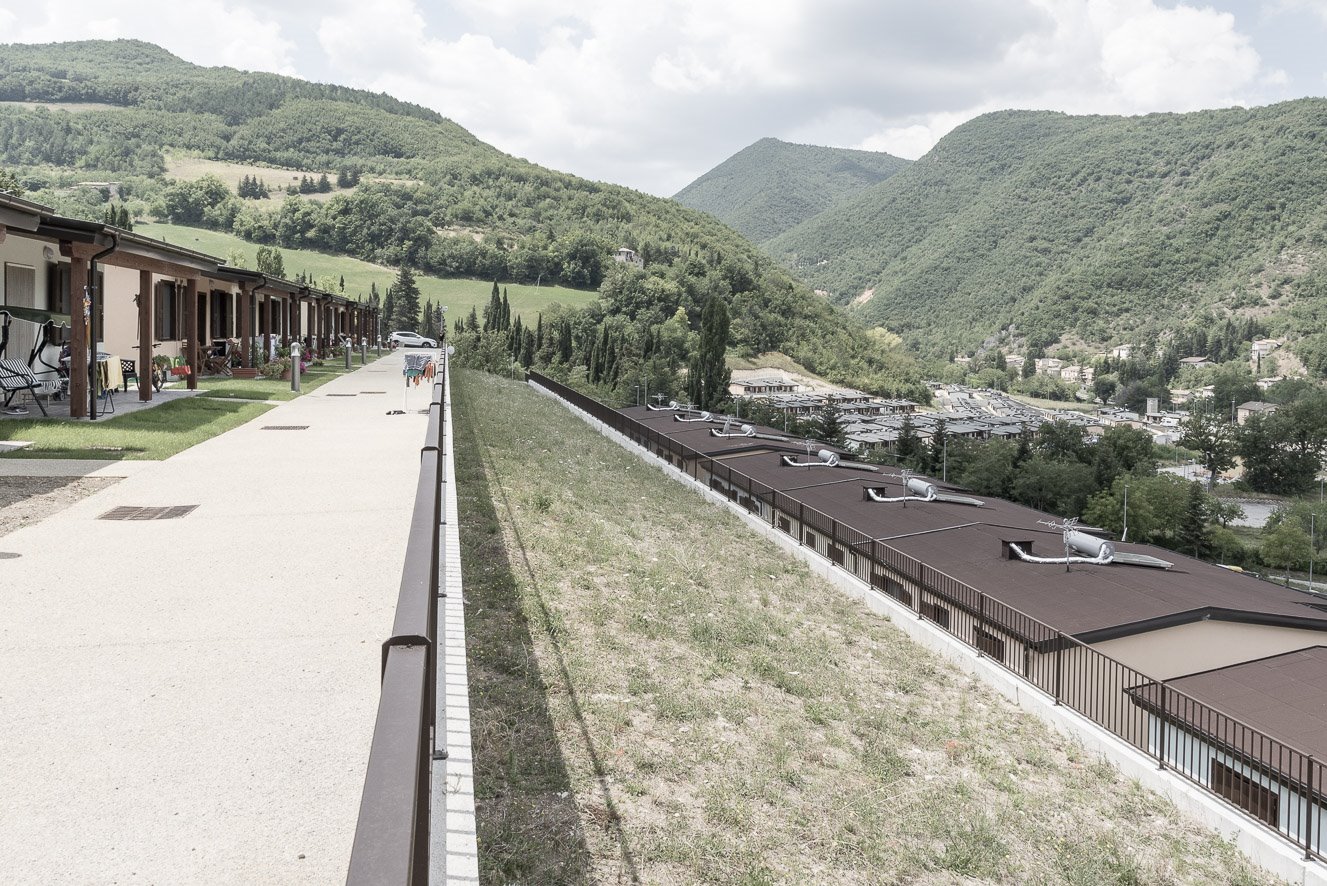 Come le S.A.E. si collocano nel territorio e come si rapportano al paesaggio complesso ed eterogeneo del Centro Italia, poi, avvicinandosi ed entrando negli insediamenti, si osservano scorci, particolari e dettagli di questi nuovi “quartieri”.