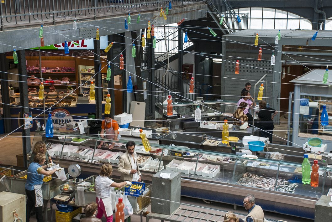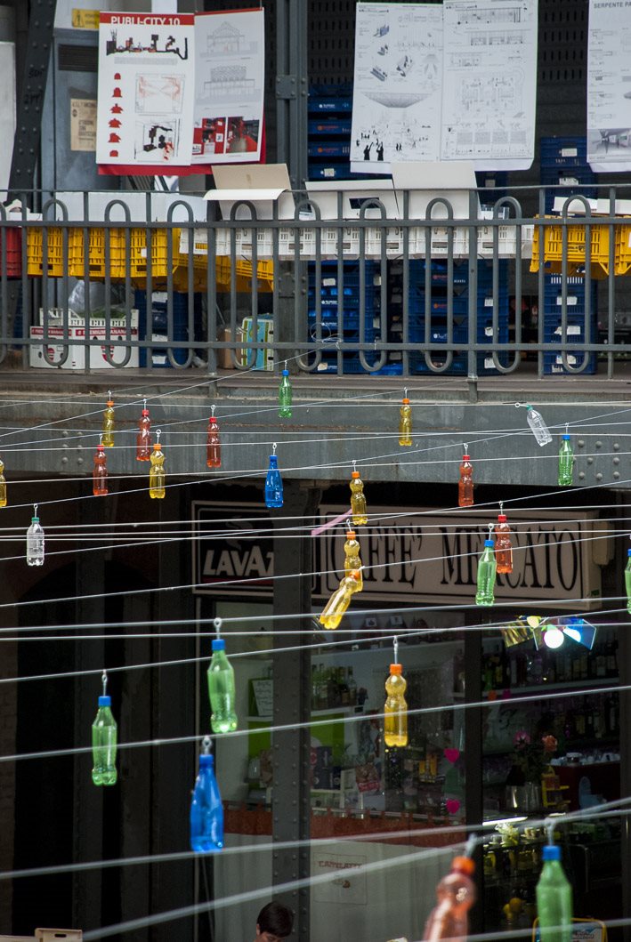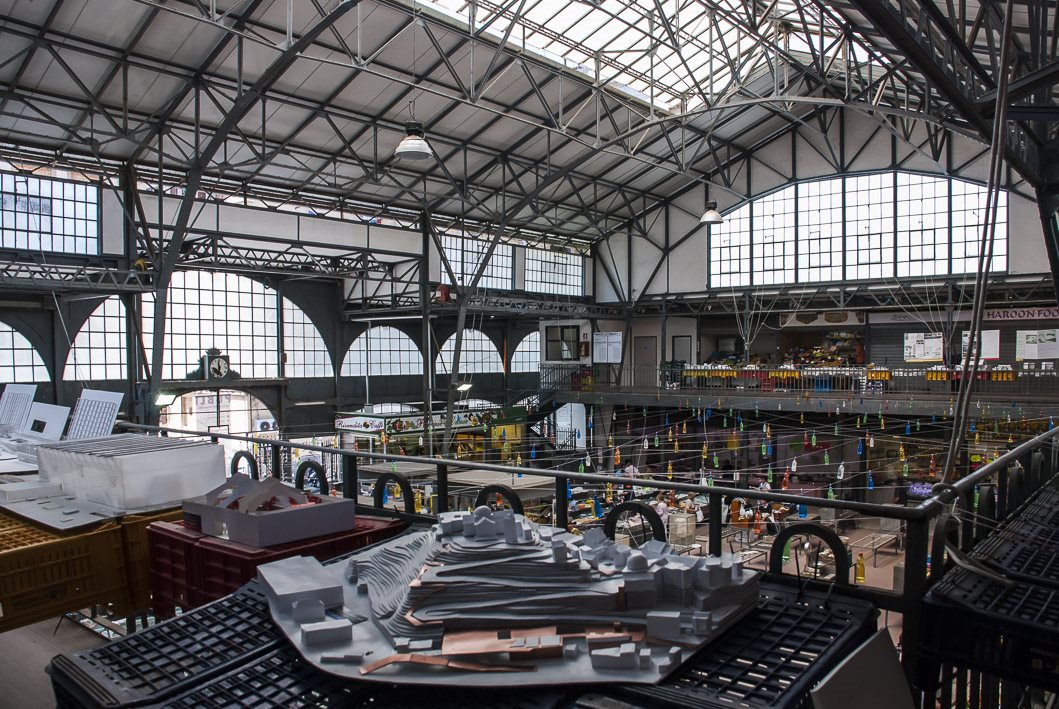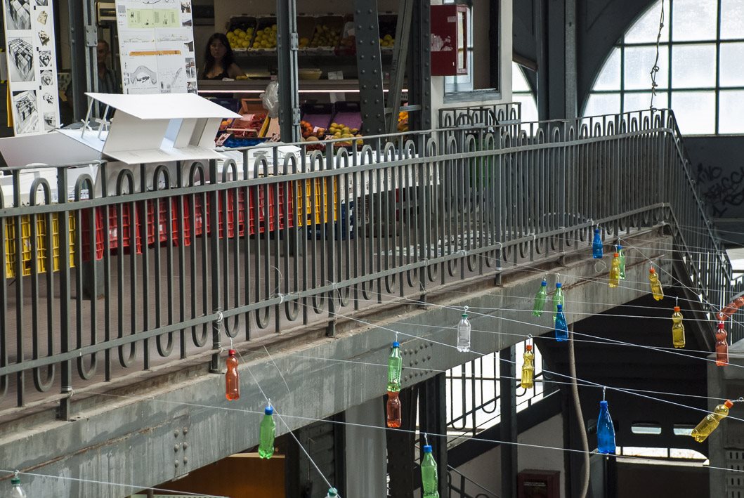 La mostra degli elaborati progettuali (tavole e plastici) si è tenuta presso il mercato delle erbe del centro storico di Ancona, luogo particolare caratterizzato dalla particolare struttura in ferro di inizio '900; oltre all'esposizione degli elaborati posti tra i banchi del mercato, era presente anche una installazione sospesa nella doppia altezza del mercato, realizzata con bottiglie colorate che conferiva all'ambiente un aspetto allegro e particolare richiamando i colori della frutta e delle varie merci solitamente presenti nel mercato.